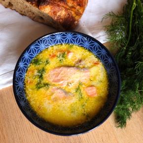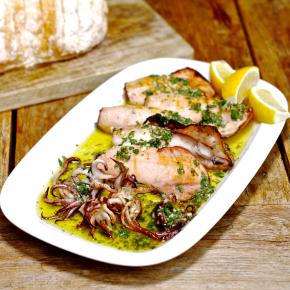 | Fínska rybacia polievka lohikeitto  Pečená chobotnica so zeleninou  Grilované kalmáre