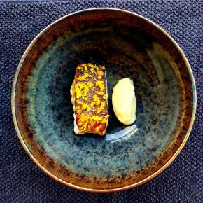 | Grilovaný pstruh s jablkovo avokádovým šalátikom  Treska Skrei s fermentovaným zelerom  Morský ostriežik na masle so šalviou