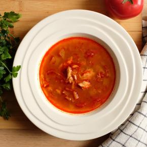 | Maďarský rybací guláš Halászlé  Pražma, cibuľa, mäsový vývar, bylinky  Tuniak, paprika, zemiaky, paradajky