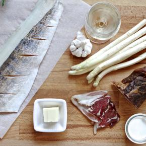 | Grilovaný morský čert v pancette s rozmarínom  Šalát Nicoise s tuniakom  Ustrice so sviežim dipom