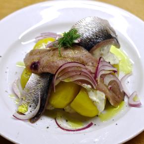 | Nakladaný sleď s kyslou smotanou, kôprom a zemiakmi  Grilovaný pstruh s jablkovo avokádovým šalátikom  Grilované červené krevety s tromi omáčkami