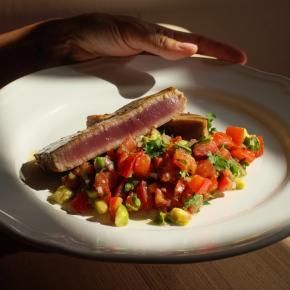 | Mušle vongole so šafránovou omáčkou  Steak z tuniaka s mexickou salsou  Grilovaná makrela so šalátom z červenej repy